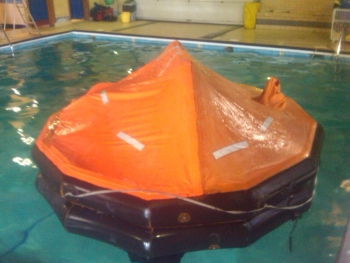 Experience first hand the problems of entering an uncooperative liferaft and assisting others while fully kitted out in wet weather gear and a lifejacket.